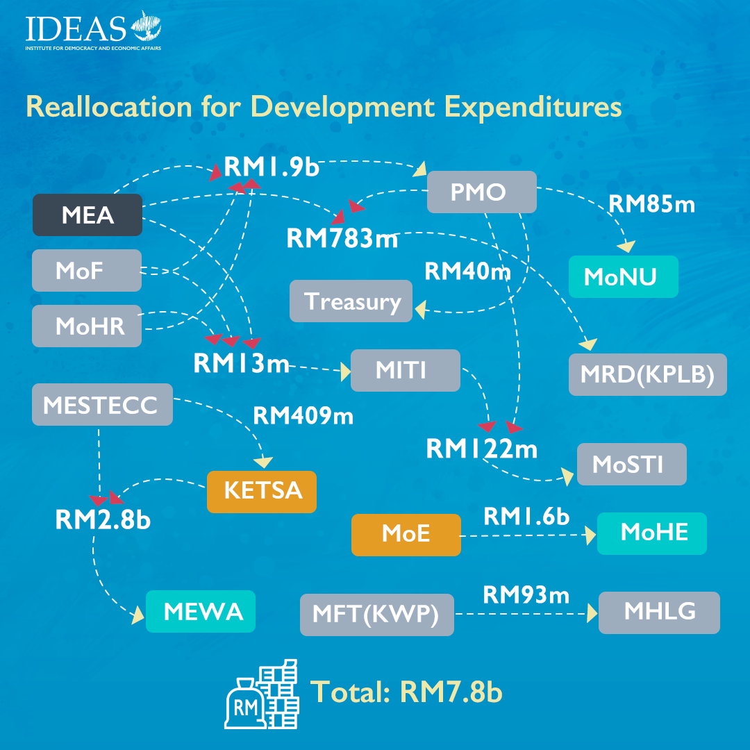 The passing of the bill was quoted to have been evidence of ‘support for the government led by Tan Sri Muhyiddin Yassin’. The act legislated a restructuring of government by reallocating funds from ministries. One even resulted in the abolishment of the Ministry of Economic Affairs, which was established during the previous government. Where the funds shift is an important indicator of the current government’s priority.