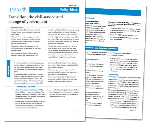 - A transition guideline must be developed on a cross-party basis detailing the processes involved before and immediately after elections to ensure smooth changeover.