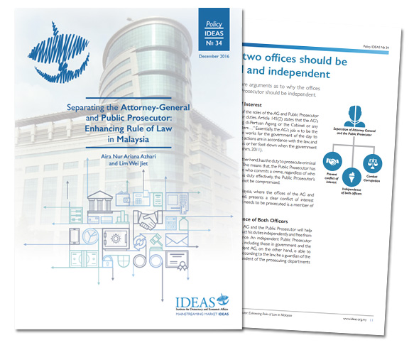 Unlike many other countries, the Attorney General (AG) has long held the dual role of acting as both the legal adviser to the Government in his capacity as the AG as well as the Public Prosecutor, the principal authority in deciding whether or not to initiate legal proceedings against someone who has committed a crime. When these two roles are fused as in the case of Malaysia, serious conflicts of interest occur, especially when the person prosecuted is a powerful figure in Government. In this paper, authors Aira Azhari and Lim Wei Jiet explain why separating the role of the Attorney General (AG) and that of the Public Prosecutor (PP) is a necessary step towards enhancing the rule of law in Malaysia.