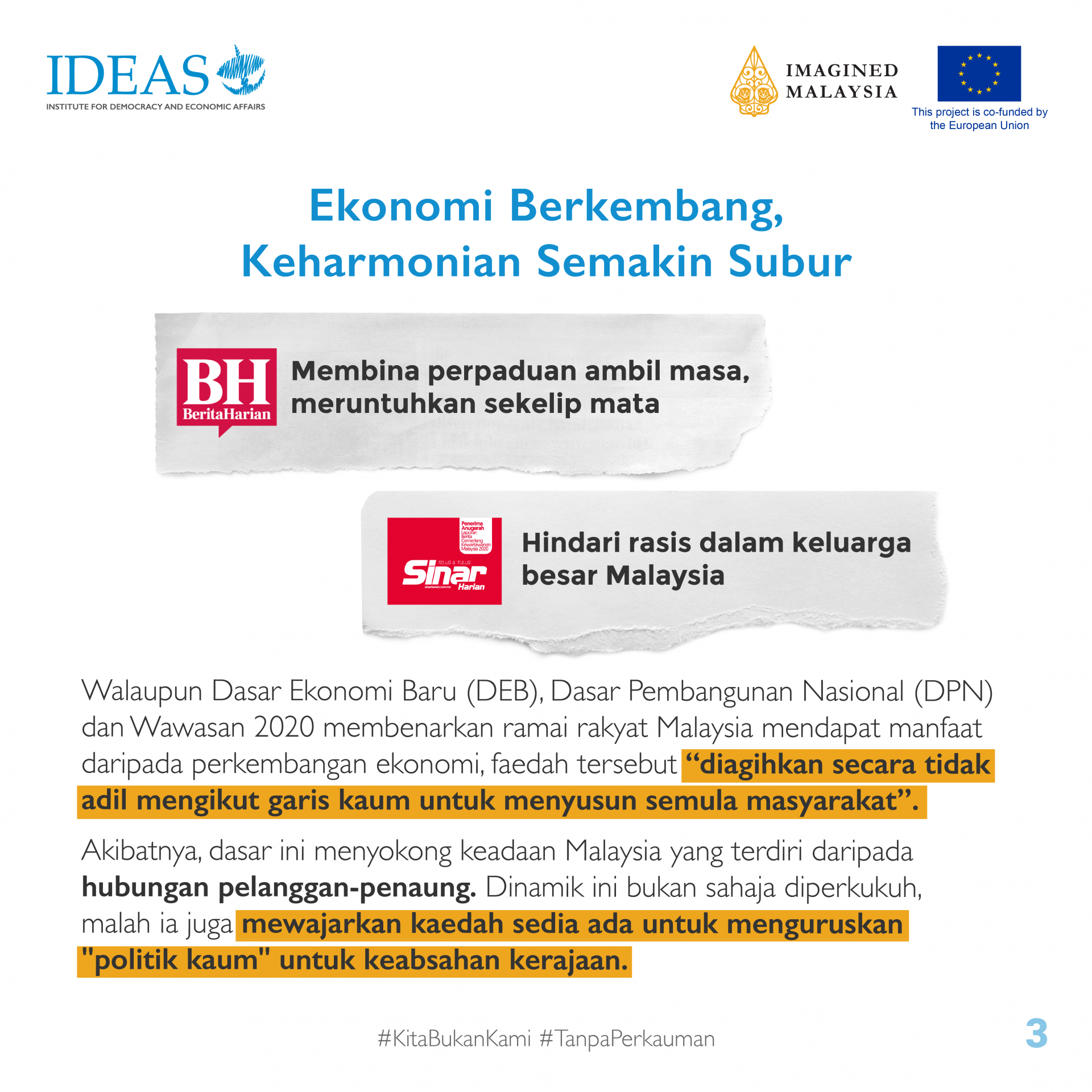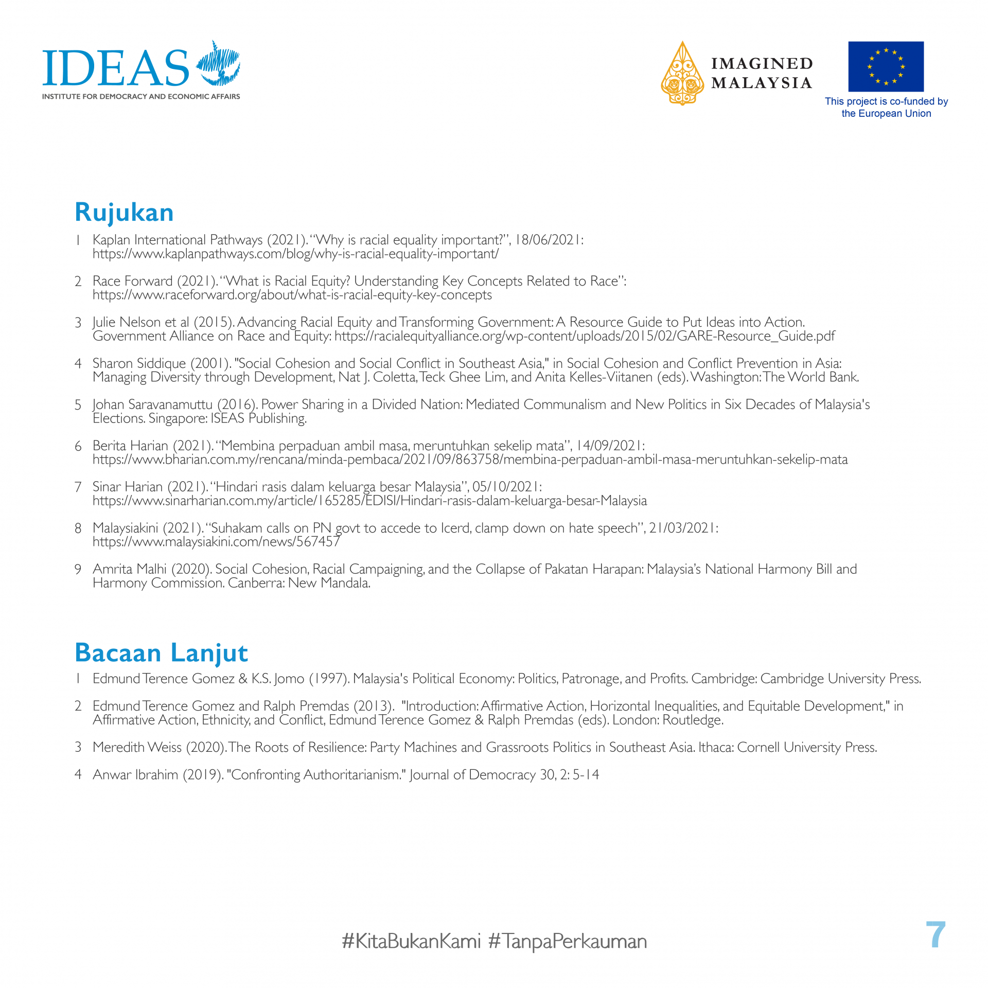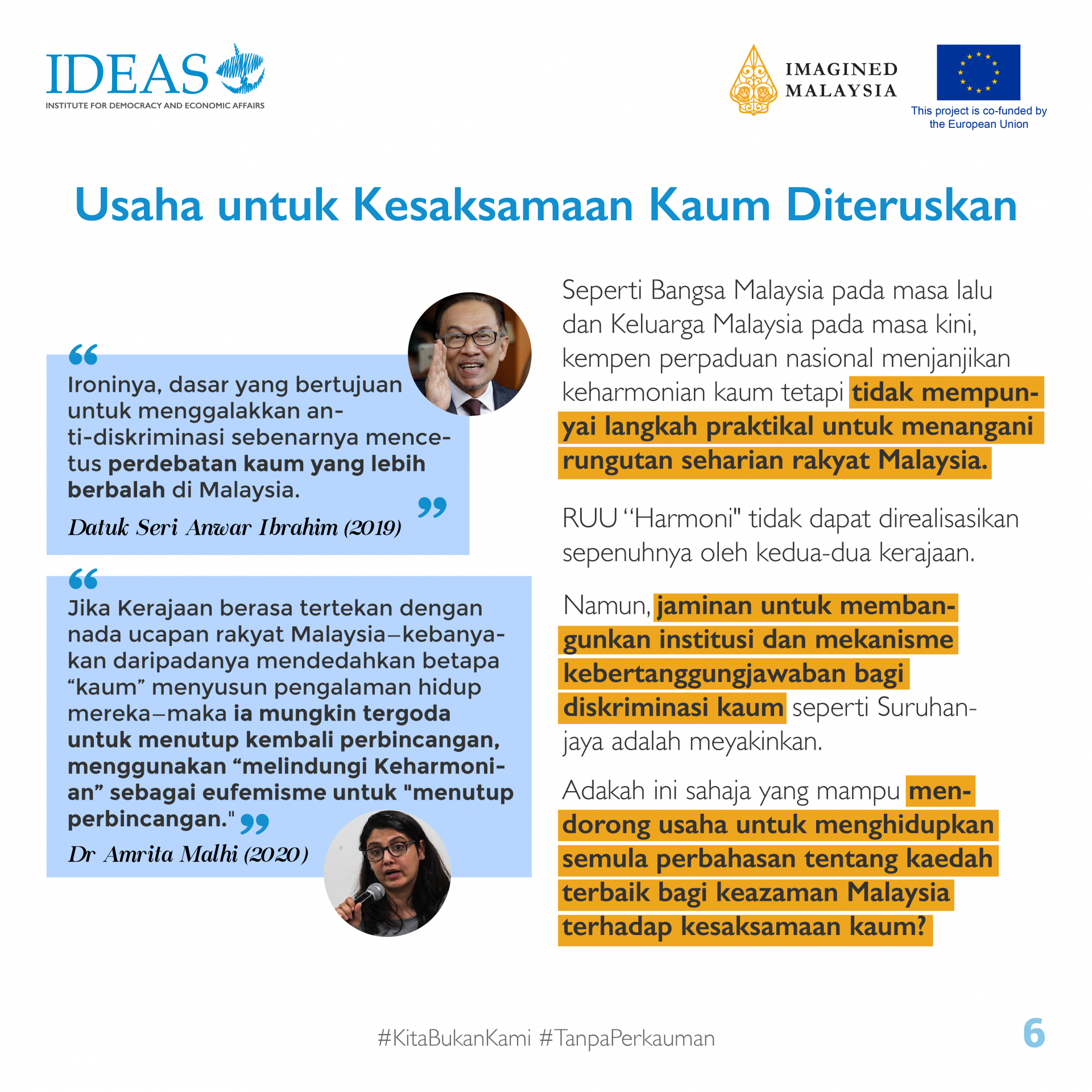 Kami bersama @imaginedmalaysia sedang bekerjasama untuk Projek #TanpaPerkauman: Sejarah Antirasis Malaysia, sebuah kempen yang bertujuan untuk memperkukuh kualiti wacana sejarah Malaysia supaya lebih inklusif, tepat dan majmuk. Projek ini dibiayai bersama oleh @euinmalaysia.